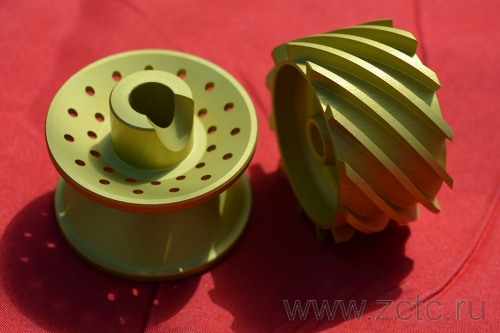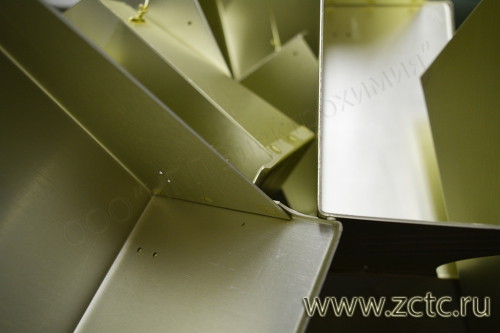 Анодирование алюминия с хроматным уплотнением позволяет получить покрытие, схожее по структуре с серебристой анодировкой. Оно имеет приятный зеленовато-желтый цвет, оттенок которого варьируется в зависимости от марки анодируемого сплава. На Д16 покрытие более темное, на АМГ6 — светлое. Разница заключается в процессе наполнения пор. Технология обработки деформируемых и литейных сплавов отличается (подробнее о них — здесь).